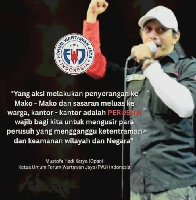Ketua Umum FWJ Indonesia, Mustofa Hadi Karya (Opan), menegaskan bahwa para pelaku aksi kekerasan dan perusakan bukanlah representasi dari masyarakat yang menyampaikan aspirasi secara sah dan konstitusional, melainkan perusuh yang secara nyata mengancam keamanan nasional dan ketertiban publik.