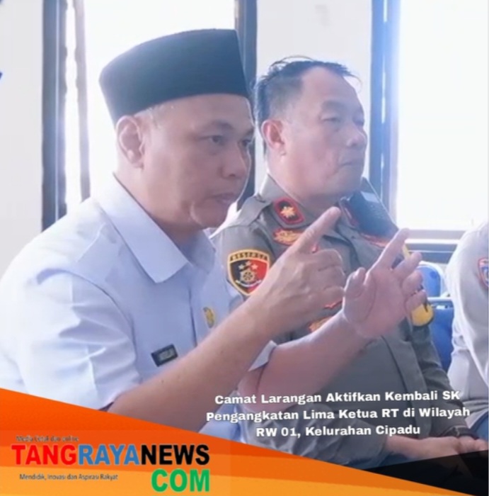 Pemerintah Kecamatan Larangan, Kota Tangerang, di bawah kepemimpinan Camat Nasrullah, SE., M.A.P, melalui koordinasi dengan Lurah Cipadu, Dady Afiandi, S.STP, secara resmi mengaktifkan kembali Surat Keputusan (SK) Pengangkatan Ketua RT di lingkungan RW 01, Kelurahan Cipadu. Pengaktifan kembali ini mulai berlaku efektif sejak 29 September 2025, dan hal ini merupakan hasil evaluasi administratif serta dialog intensif dengan berbagai pemangku kepentingan lokal.