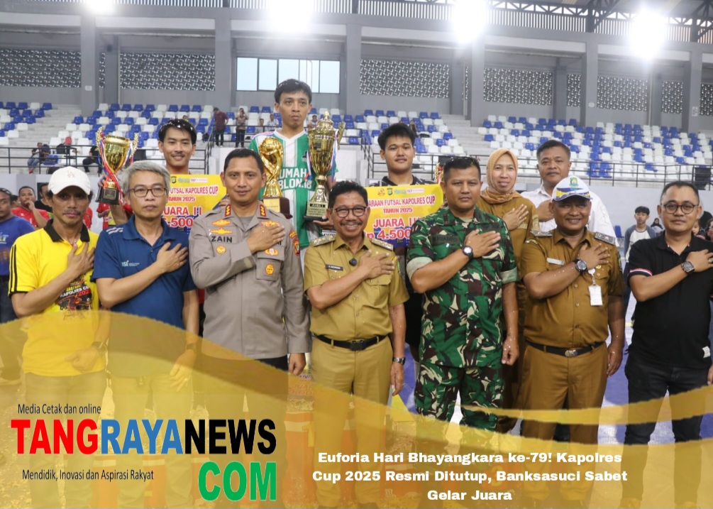 Kapolres Metro Tangerang Kota, Komisaris Besar Polisi (KBP) Zain Dwi Nugroho bersama dengan Wali Kota Tangerang Drs H. Sachrudin menutup rangkaian kegiatan Turnamen Futsal Kapolres Cup 2025 di GOR Nambo, Karawaci, Selasa (3/6/2025) petang WIB.