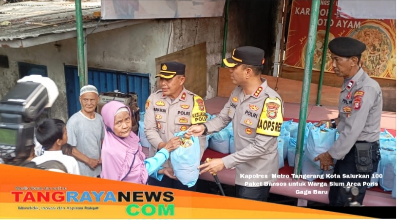 Kapolres Metro Tangerang Kota Salurkan 100 Paket Bansos untuk Warga Slum Area Poris Gaga Baru