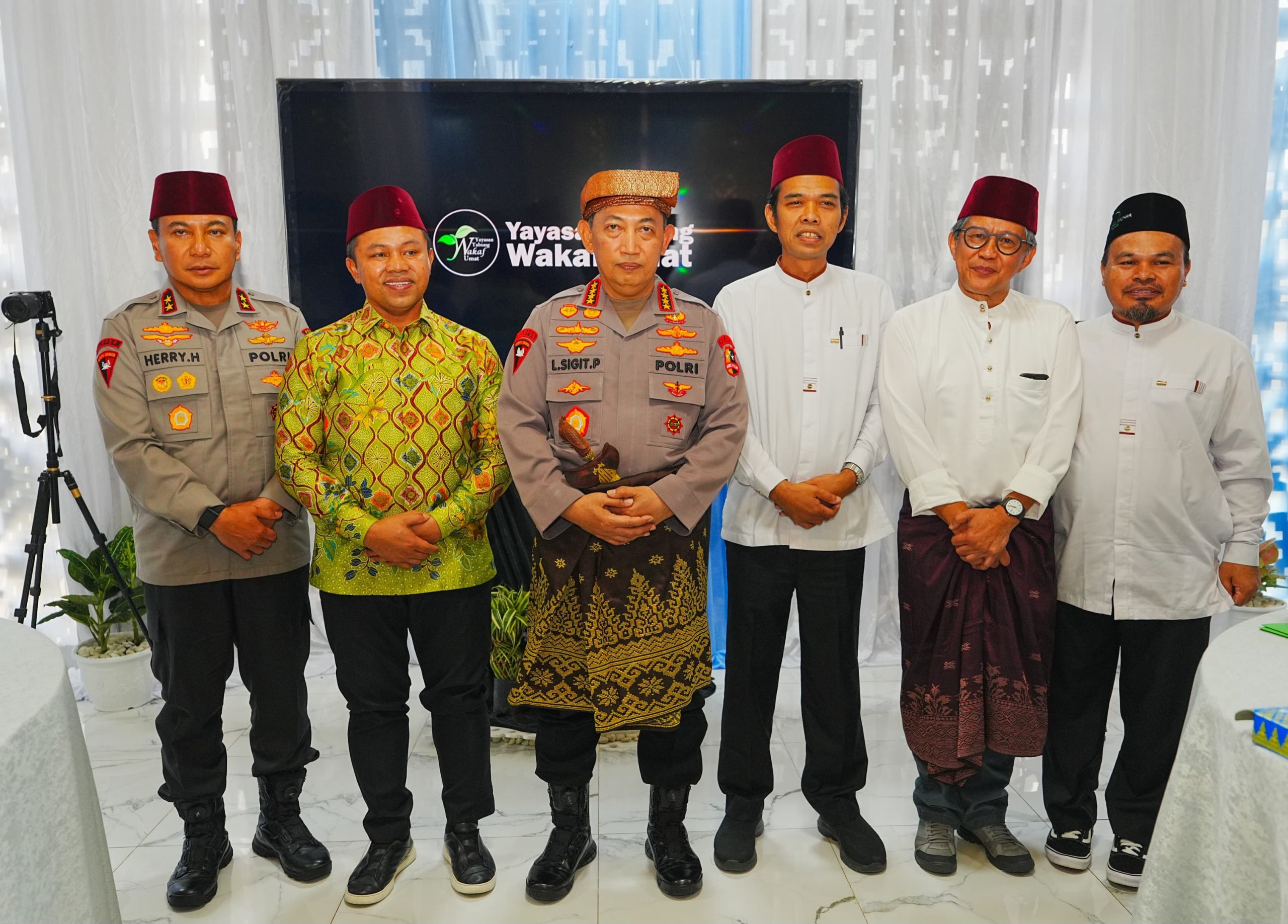 Dalam kegiatan tersebut, Kapolri didampingi oleh sejumlah pejabat utama Mabes Polri, antara lain Inspektur Pengawasan Umum (Irwasum) Polri Komjen Pol. Dedi Prasetyo, Asisten Kapolri Bidang Sumber Daya Manusia (As SDM) Irjen Pol. Anwar, Kepala Divisi Propam Polri Irjen Pol. Abdul Karim, Kepala Divisi Humas Polri Irjen Pol. Sandi Nugroho, Kepala Korps Lalu Lintas (Kakorlantas) Polri Irjen Pol. Agus Suryonugroho, serta Kapolda Riau Irjen Pol. Hery Heryawan. Turut hadir pula Gubernur Riau, H. Abdul Wahid, dan tokoh ulama nasional sekaligus Dewan Pembina YTWU, Ustaz H. Abdul Somad, Lc., D.E.S.A., Ph.D.