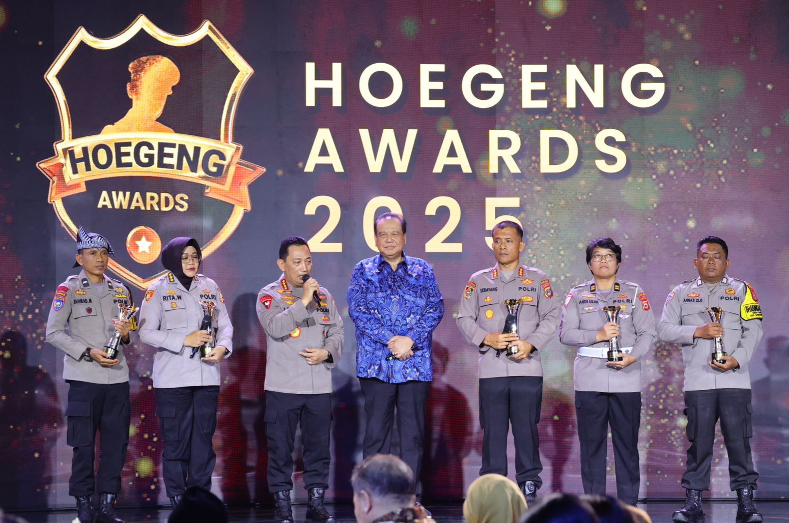 > “Kami berharap penghargaan Hoegeng ini menjadi medium yang efektif untuk mendorong anggota-anggota Polri agar senantiasa menunjukkan dedikasi terbaik melalui inovasi, integritas, dan kontribusi nyata, di manapun mereka bertugas,” ujar Kapolri.