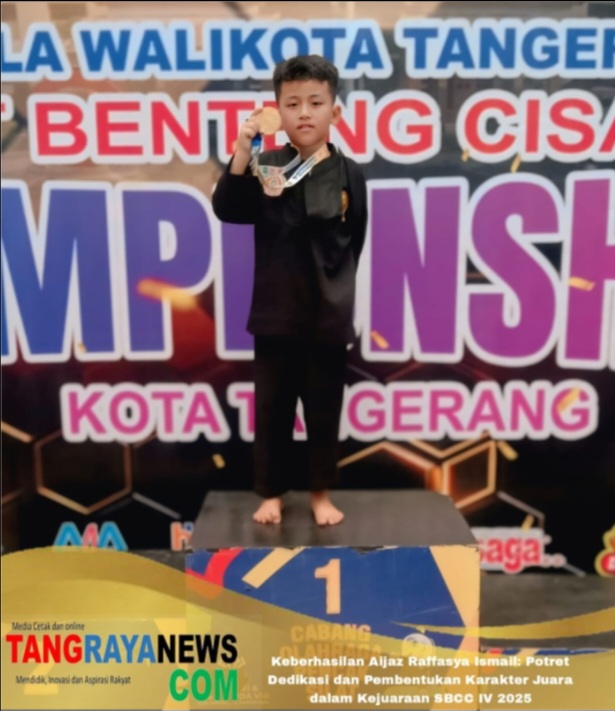Kejuaraan Silat Benteng Cisadane Championship (SBCC) IV 2025 yang berlangsung di Mal Balekota, Kota Tangerang, selama tiga hari dari 2 hingga 4 Mei, menjadi panggung bagi talenta-talenta muda berbakat di dunia pencak silat. Di antara ribuan peserta yang bertanding dengan penuh semangat, sosok pesilat cilik bernama Aijaz Raffasya Ismail mencuri perhatian. Bocah berusia delapan tahun ini, yang saat ini menempuh pendidikan di SDN Karang Tengah 1 Kota Tangerang, berhasil mengukir sejarah dengan meraih medali emas dalam kategori usia dini.Minggu 4/5/2025.