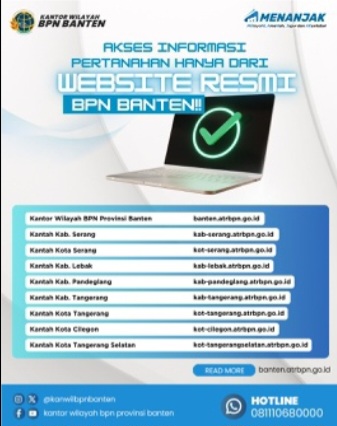 Masyarakat di Provinsi Banten diimbau untuk hanya mengakses informasi pertanahan dan tata ruang melalui situs resmi kantor wilayah dan kantor pertanahan setempat: