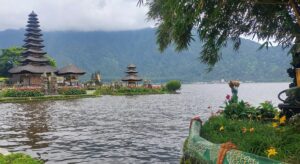 Terletak di tepian barat Danau Beratan, kompleks Pura Ulun Danu Beratan dikenal luas karena keunikan arsitektural dan lanskapnya. Salah satu pelinggih utama, Pura Lingga Petak, tampak berdiri anggun seolah mengapung di atas permukaan danau, menciptakan citra visual ikonik yang kerap disebut sebagai “pura terapung”. Lanskap pegunungan Bedugul yang sejuk, kabut tipis yang menyelimuti kawasan, serta refleksi pura di permukaan air menjadikan tempat ini bukan hanya destinasi wisata, tetapi juga ruang kontemplasi spiritual yang mendalam.