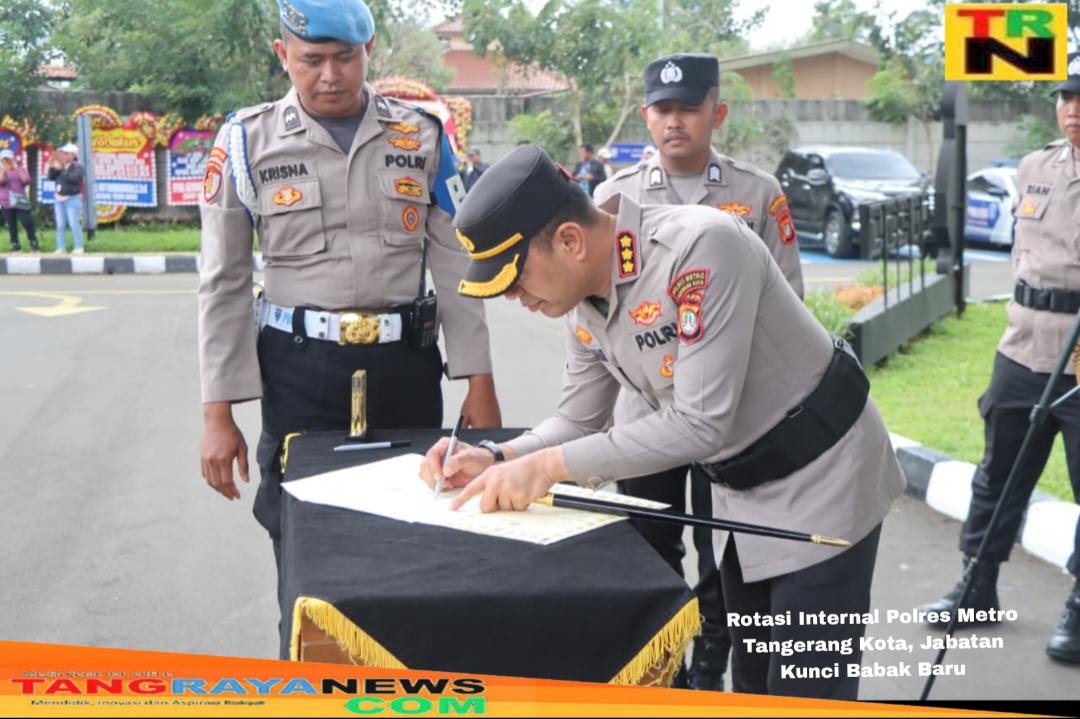 Rotasi jabatan kembali dilakukan di lingkungan Polres Metro Tangerang Kota. Serah terima jabatan (sertijab) pejabat utama dan kapolsek jajaran digelar di Lapangan Presisi Polres Metro Tangerang Kota, Jalan Perintis Kemerdekaan II, Babakan, Kota Tangerang, Rabu Siang (18/2/2026).