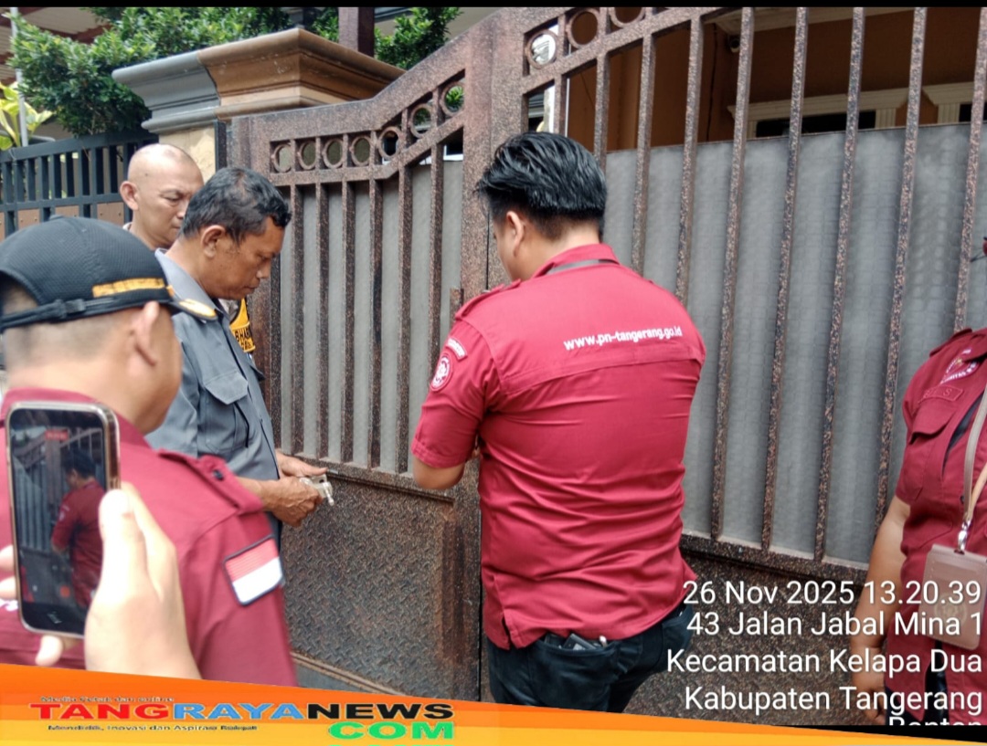 Kab.TANGERANG, tangrayanews.com Proses eksekusi sebuah rumah di Perumahan Islamic Village, Kelapa Dua, Kabupaten Tangerang, Rabu (26/11/2025)pagi berlangsung tegang. Pengamanan gabungan dari TNI, Polsek Kelapa Dua, dan Polres Tangsel diterjunkan demi memastikan jalannya eksekusi tetap aman saat tim Pengadilan Negeri (PN) Tangerang tiba di lokasi.