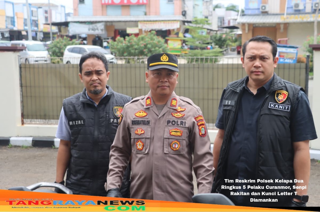 Tim Reskrim Polsek Kelapa Dua Ringkus 5 Pelaku Curanmor, Senpi Rakitan dan Kunci Letter T Diamankan