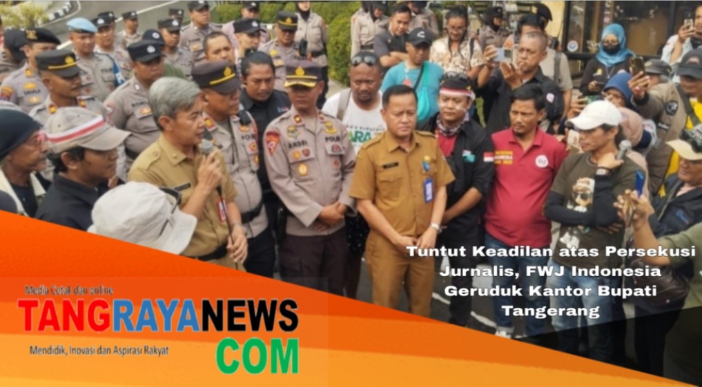 Forum Wartawan Jaya (FWJ) Indonesia turun aksi massa di depan Pemerintah Kabupaten (Pemkab) Tangerang sebagai bentuk protes keras pertanggunjawaban Bupati Tangerang atas berbagai persekusi jurnalis yang dilakukan jajarannya. Aksi yang diinisasi FWJ Indonesia ini digelar hari Selasa (16/9/2025).