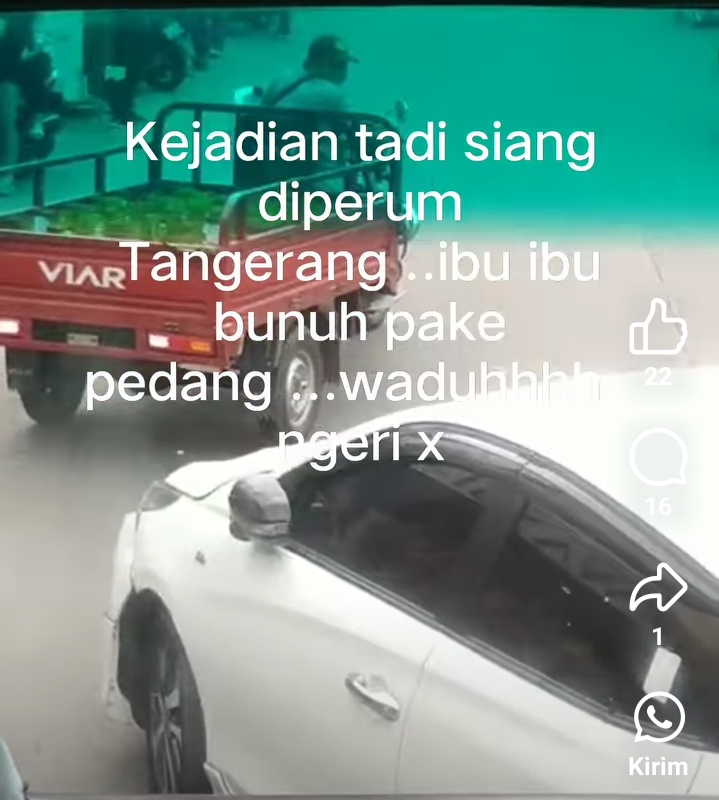 Viral video di media sosial, seorang wanita membawa senjata tajam jenis samurai diduga melakukan penusukan kepada seorang wanita paruh baya inisial RA usia 43 tahun hingga tewas, Korban diduga sebagai penjaga toko pakaian di Tangerang.
